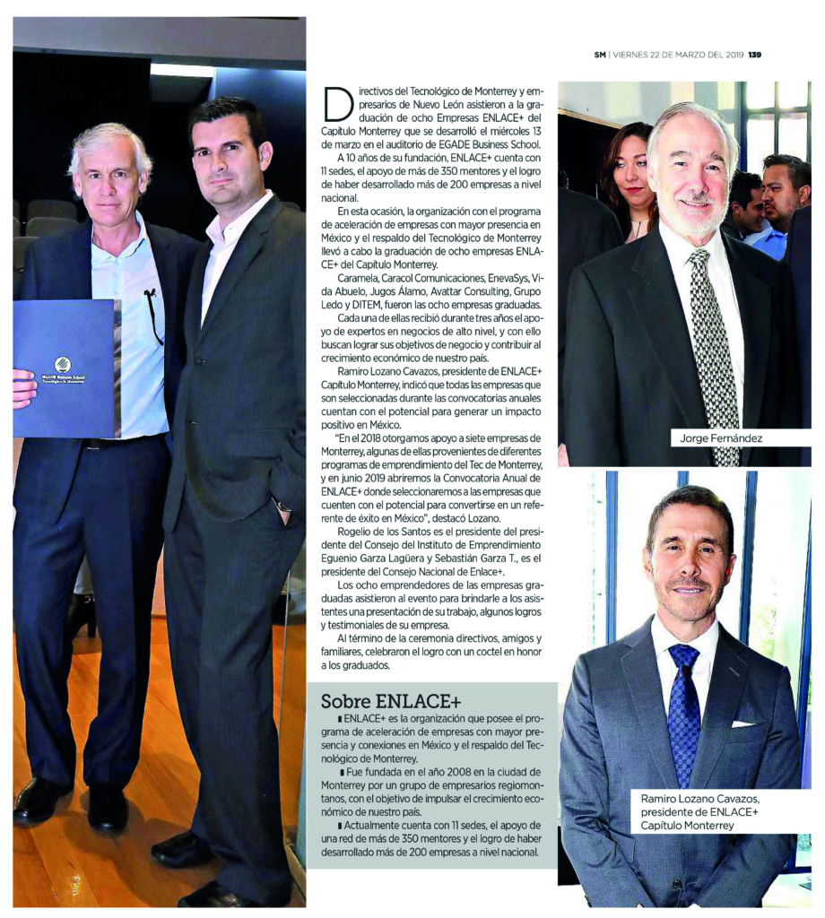 - enlace+ es la organización que posee el programa de aceleración de empresas con mayor presencia y conexiones en México y el respaldo del Tecnológico de Monterrey.